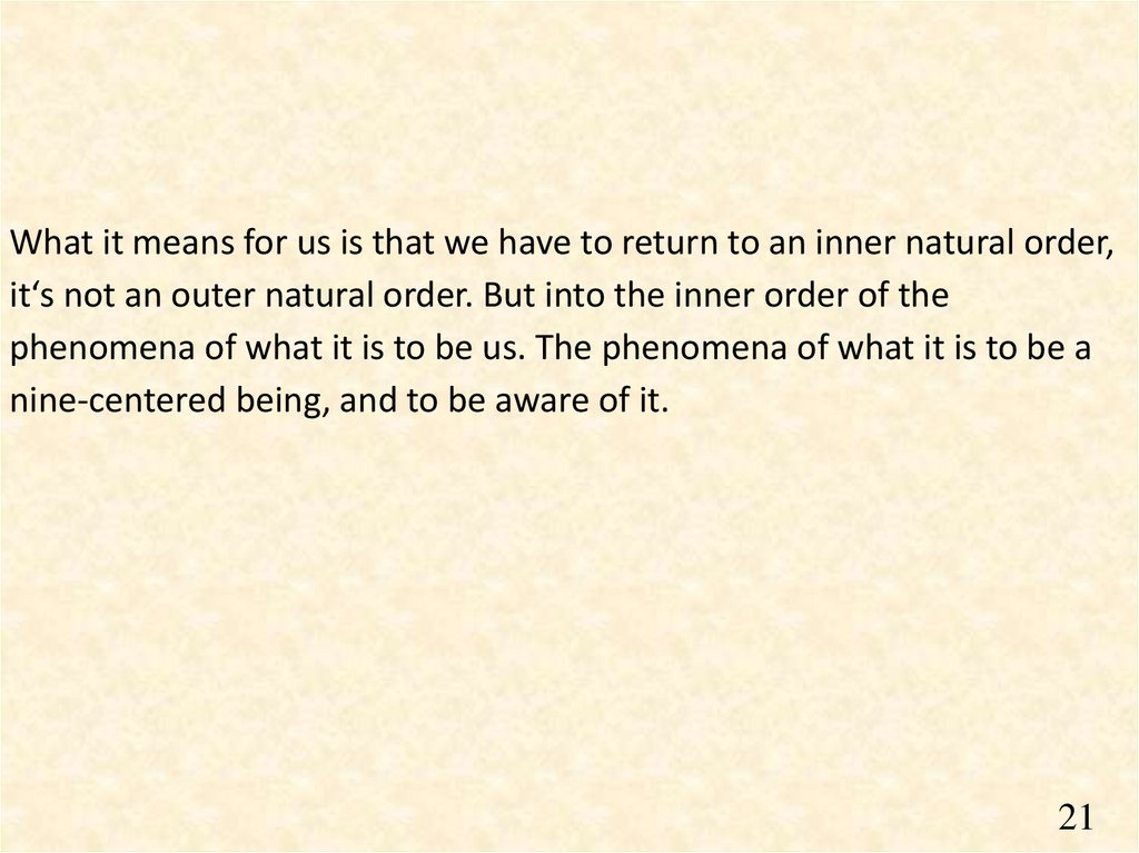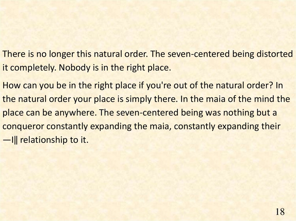 There is no longer this natural order. The seven-centered being distortedit completely. Nobody is in the right place.