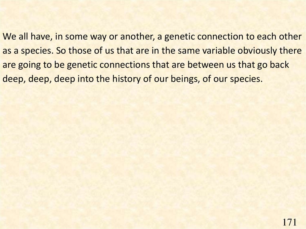 We all have, in some way or another, a genetic connection to each otheras a species. So those of us that are in the same variable obviously there