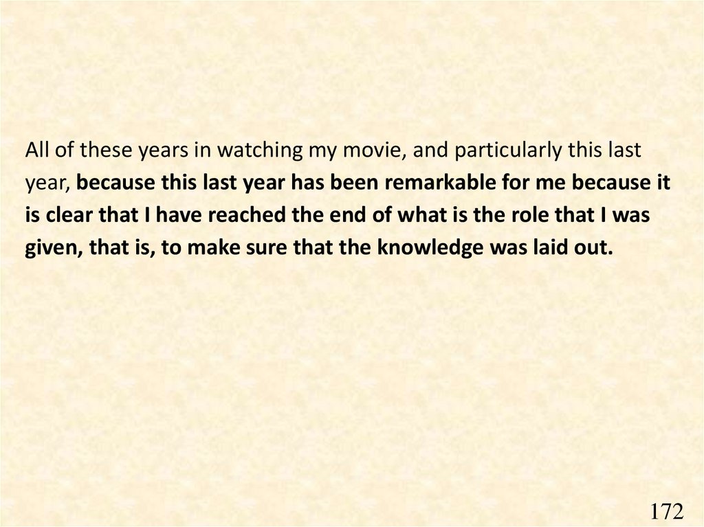 All of these years in watching my movie, and particularly this lastyear, because this last year has been remarkable for me because it