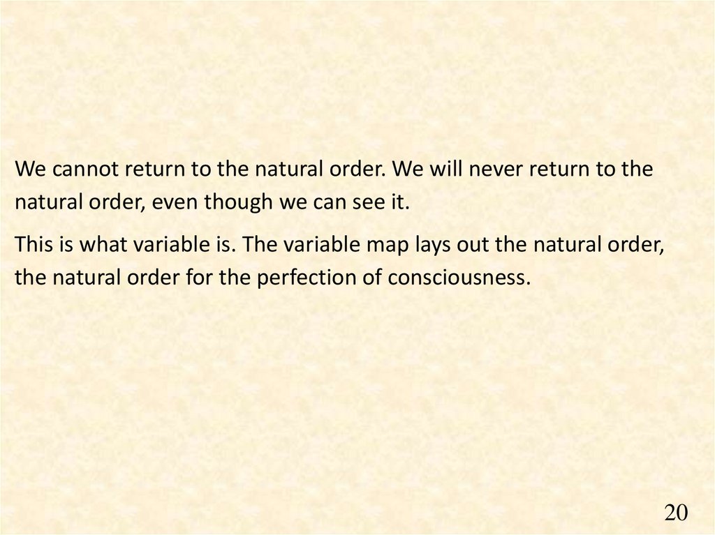 I talked about the fact that there was a lot of impracticality in looking atvariable, because we're looking at what is a mechanical natural order