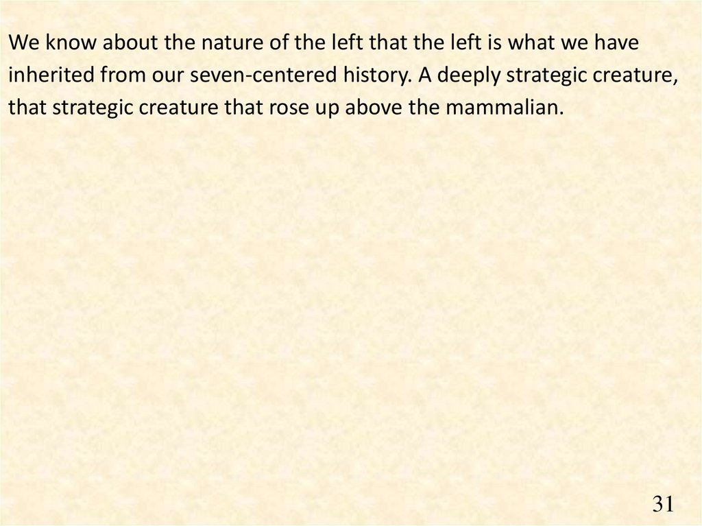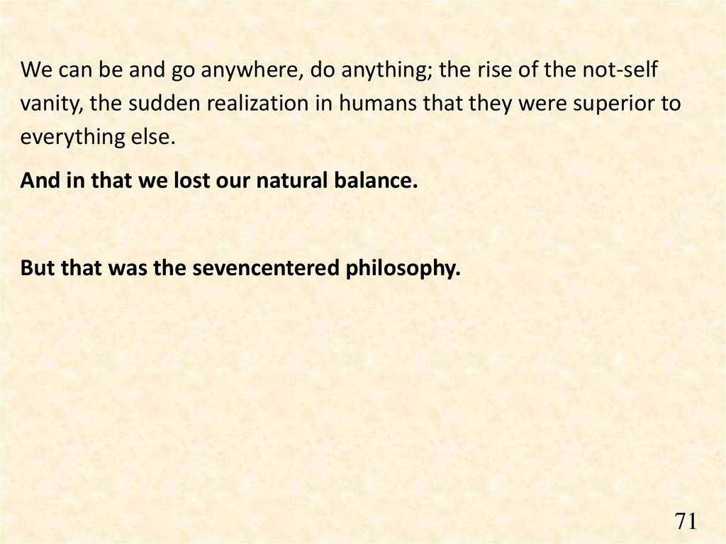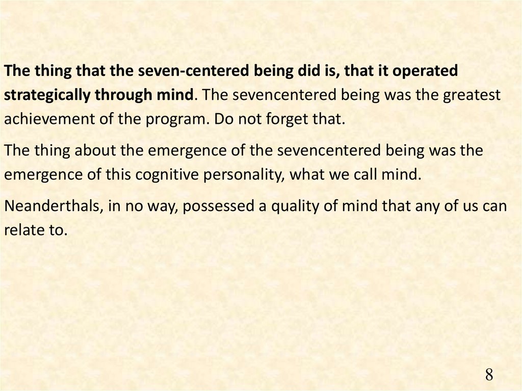 The thing that the seven-centered being did is, that it operatedstrategically through mind. The sevencentered being was the greatest