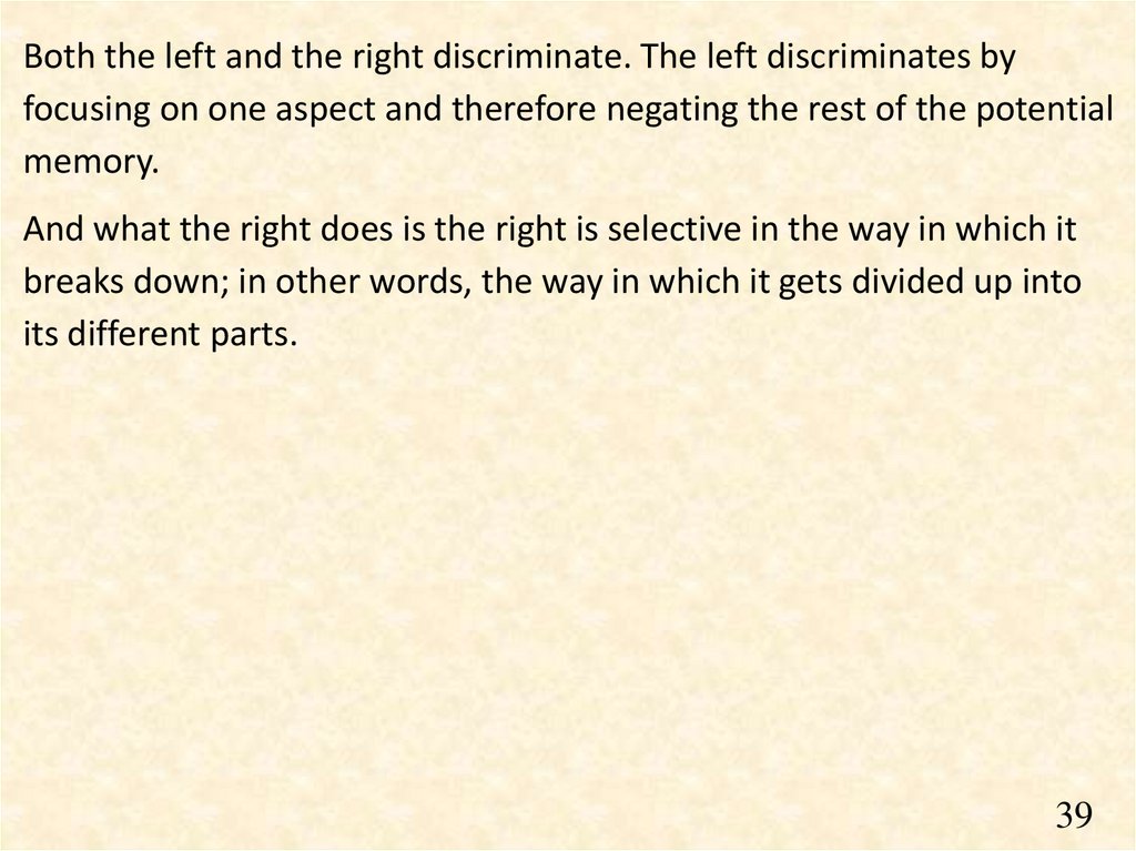 Because of the fact that mind rules that the left is the generaltendency of the way things operate. So, in fact when you get to this