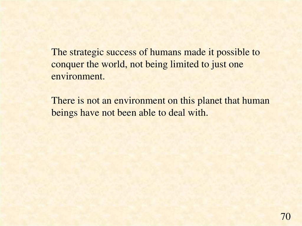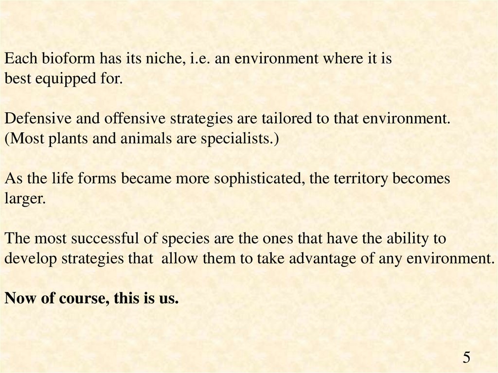 Each bioform has its niche, i.e. an environment where it isbest equipped for.