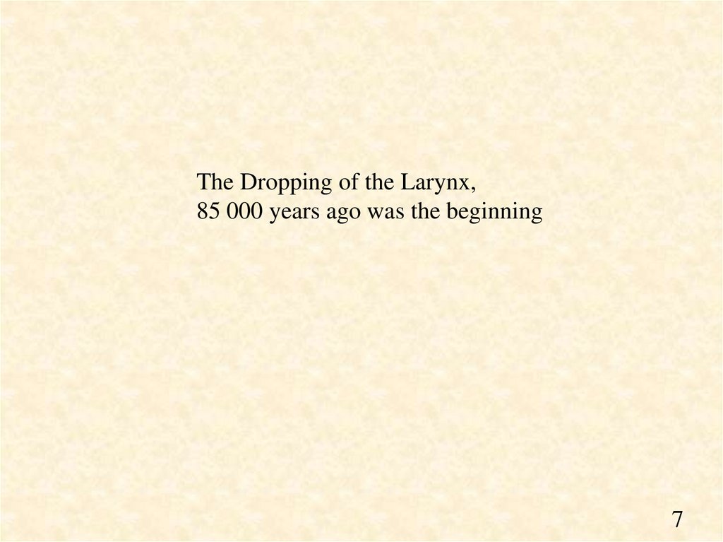 The Dropping of the Larynx,85 000 years ago was the beginning