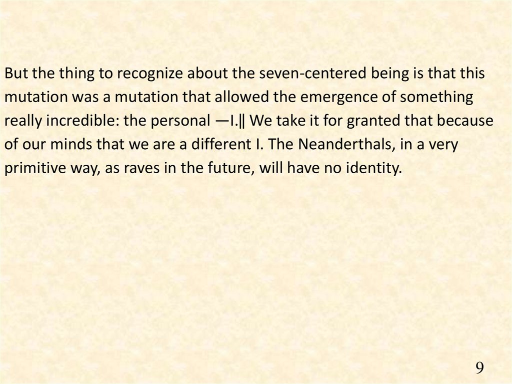 But the thing to recognize about the seven-centered being is that thismutation was a mutation that allowed the emergence of something
