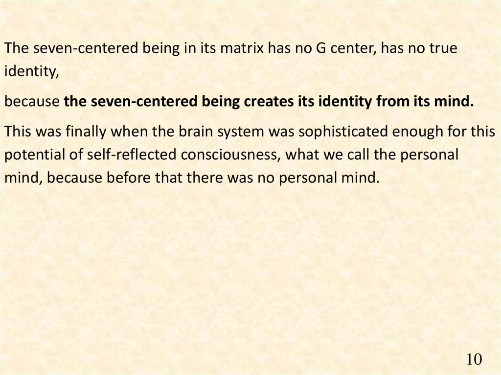 The seven-centered being in its matrix has no G center, has no trueidentity,