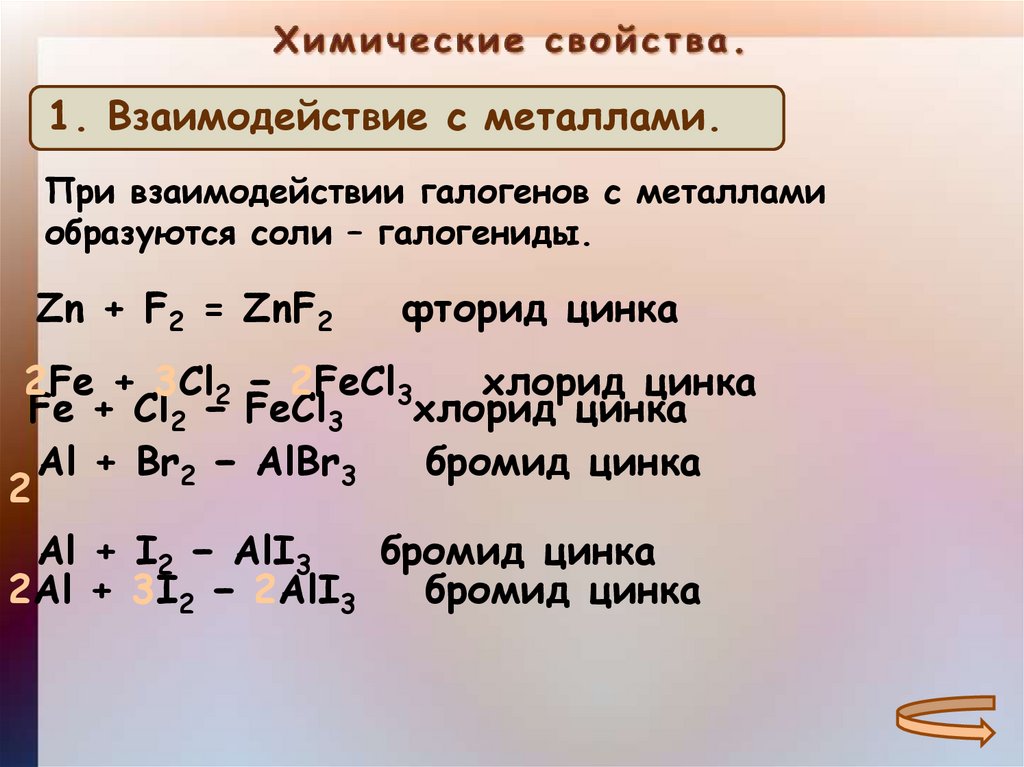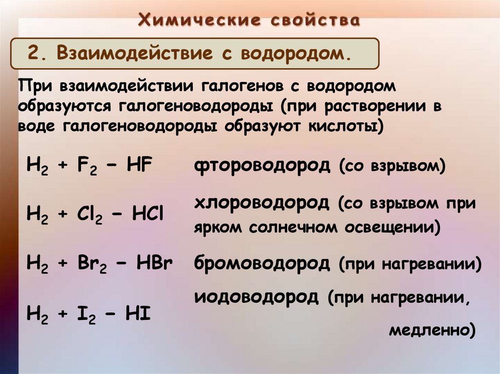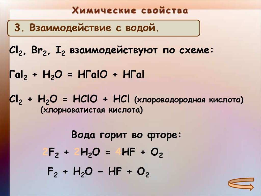 F2 > Cl2 > Br2 > I2 активность уменьшается