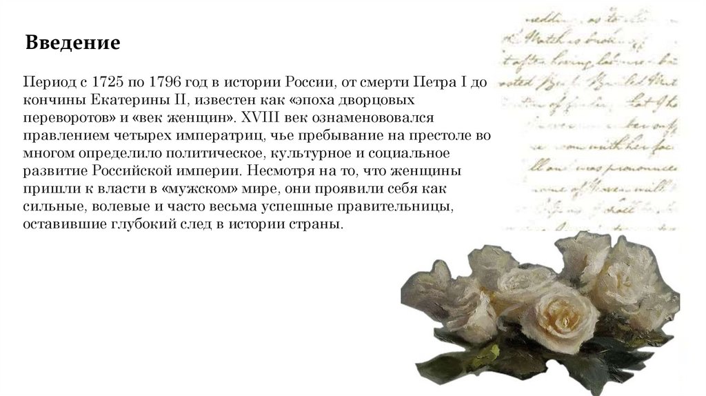 ВведениеПериод с 1725 по 1796 год в истории России, от смерти Петра I до