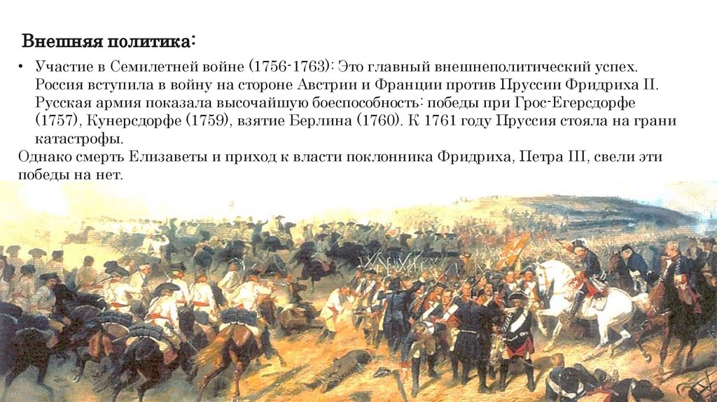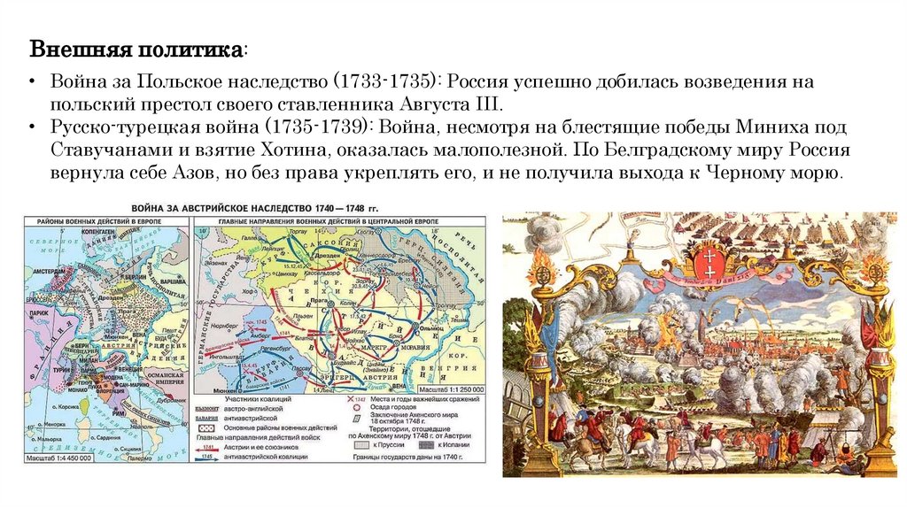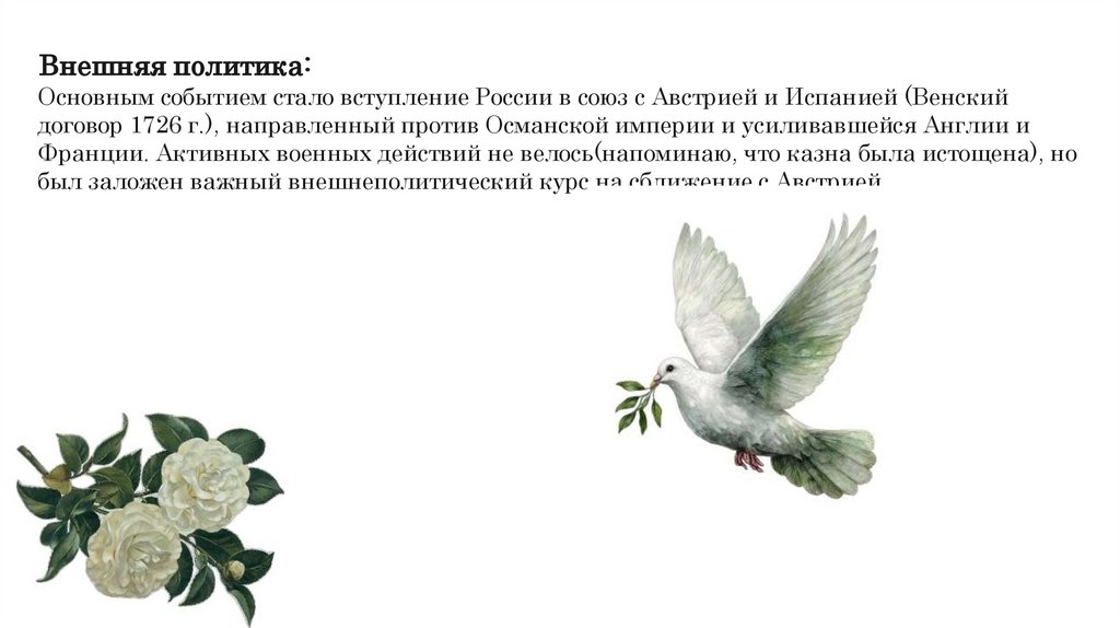 Внешняя политика:Основным событием стало вступление России в союз с Австрией и Испанией (Венский