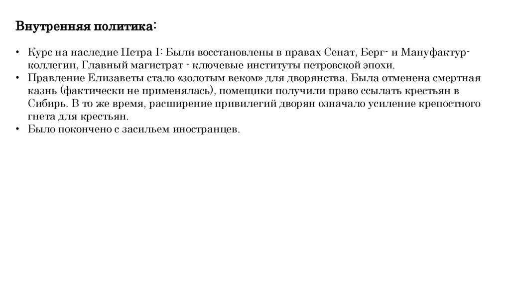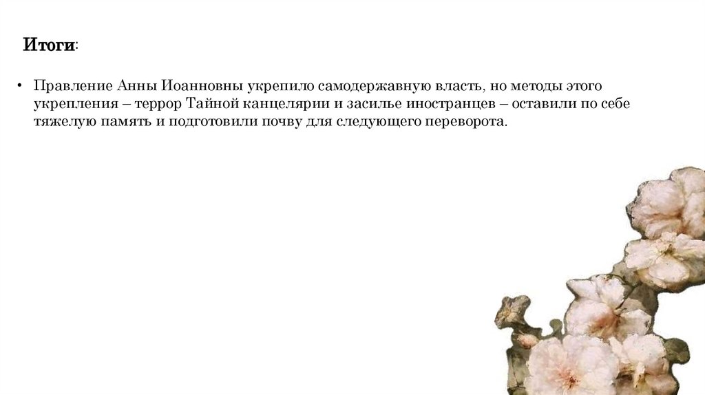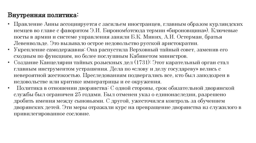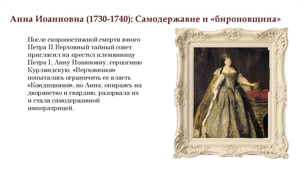 правления, через жесткий авторитаризм Анны Иоанновны и