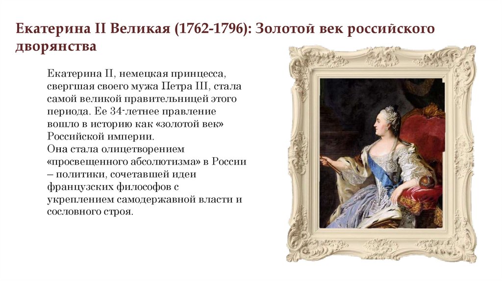 помещиков. Период правления Екатерины считается апогеем крепостничества в России,