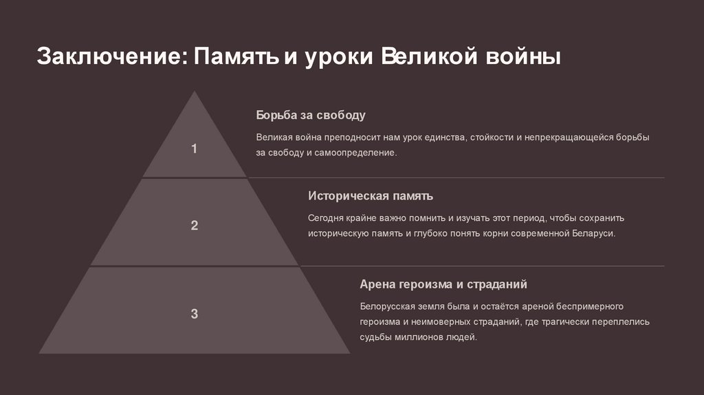 Заключение: Память и уроки Великой войныБорьба за свободу