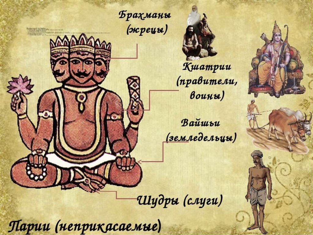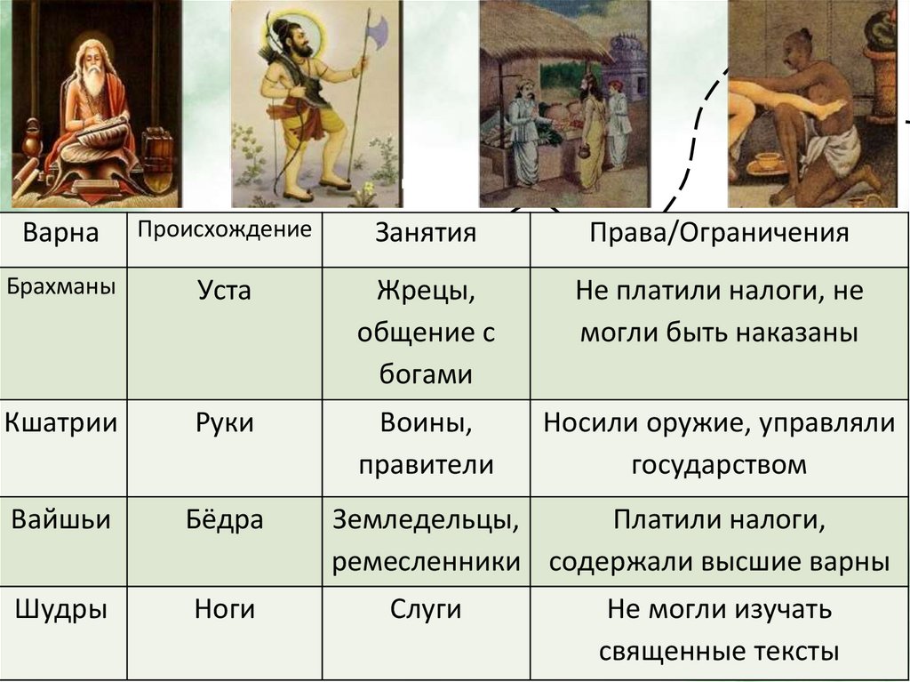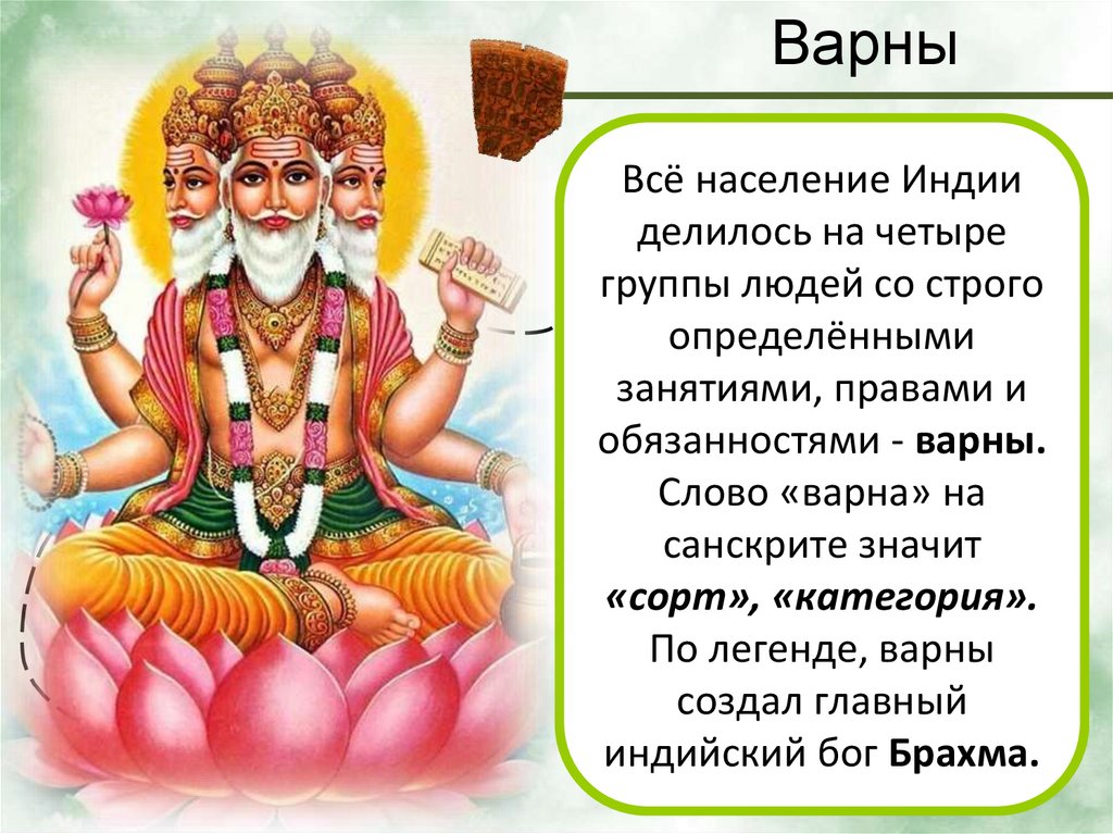 • Варны – четыре большие сословныегруппы, на которые делилось население