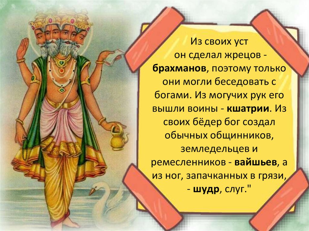 Из своих устон сделал жрецов брахманов, поэтому только
