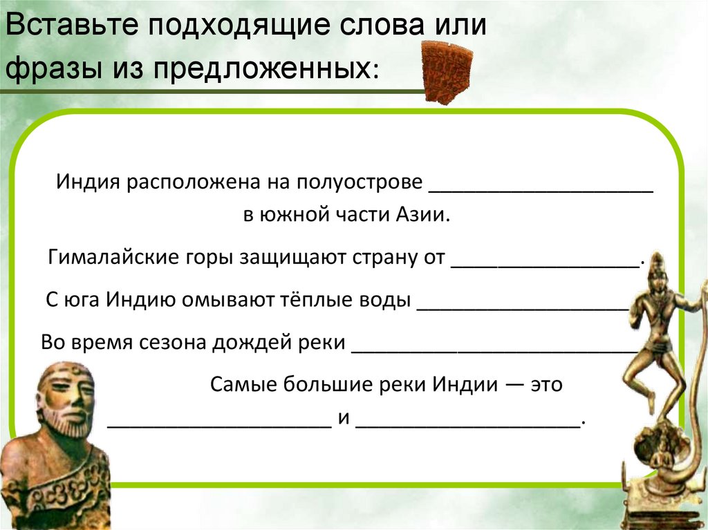 Вставьте подходящие слова илифразы из предложенных: