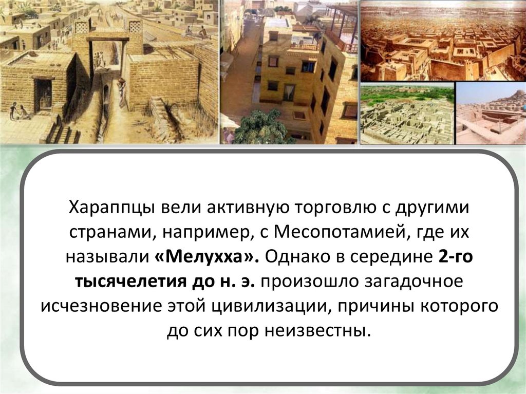 Хараппцы вели активную торговлю с другимистранами, например, с Месопотамией, где их