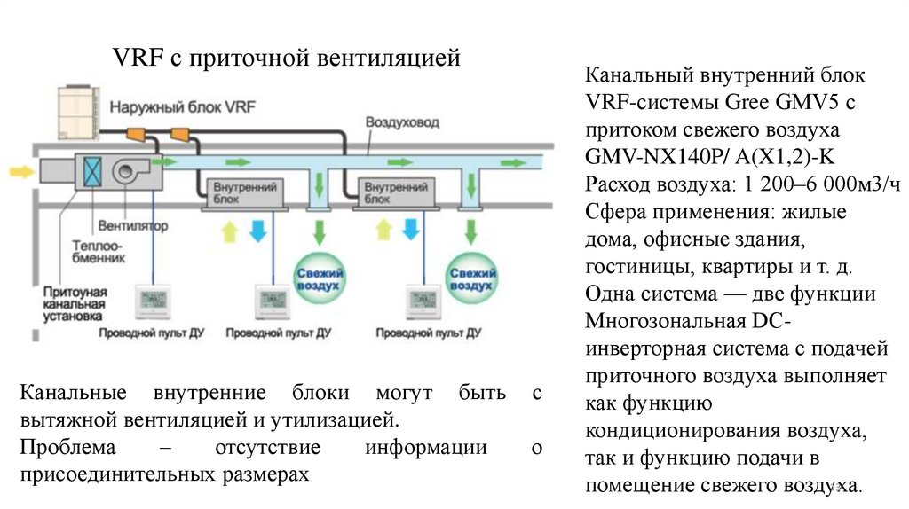 внутреннего воздуха, VRF система подает требуемое количество свежего приточного