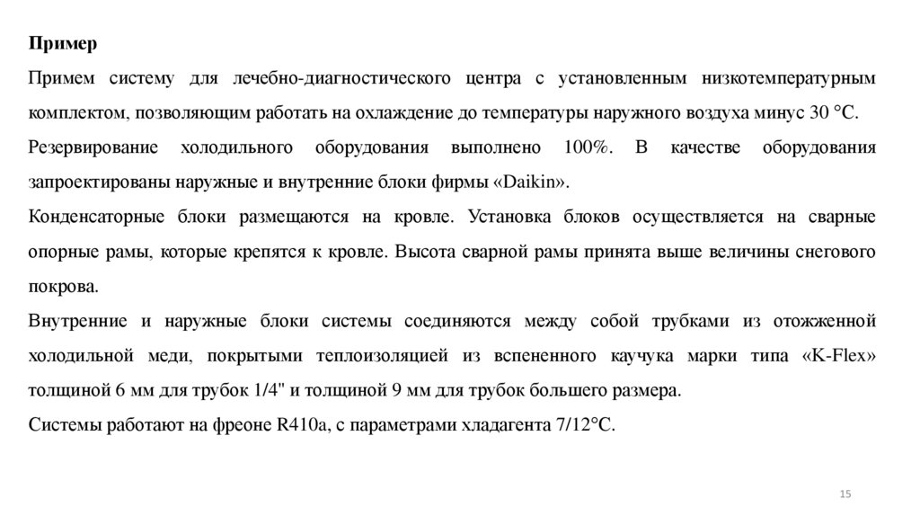 ПримерПримем систему для лечебно-диагностического центра с установленным низкотемпературным