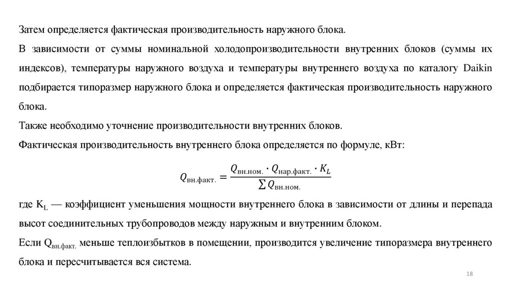 Суммируются номинальные холодопроизводительности внутренних блоков (или их индексы). По