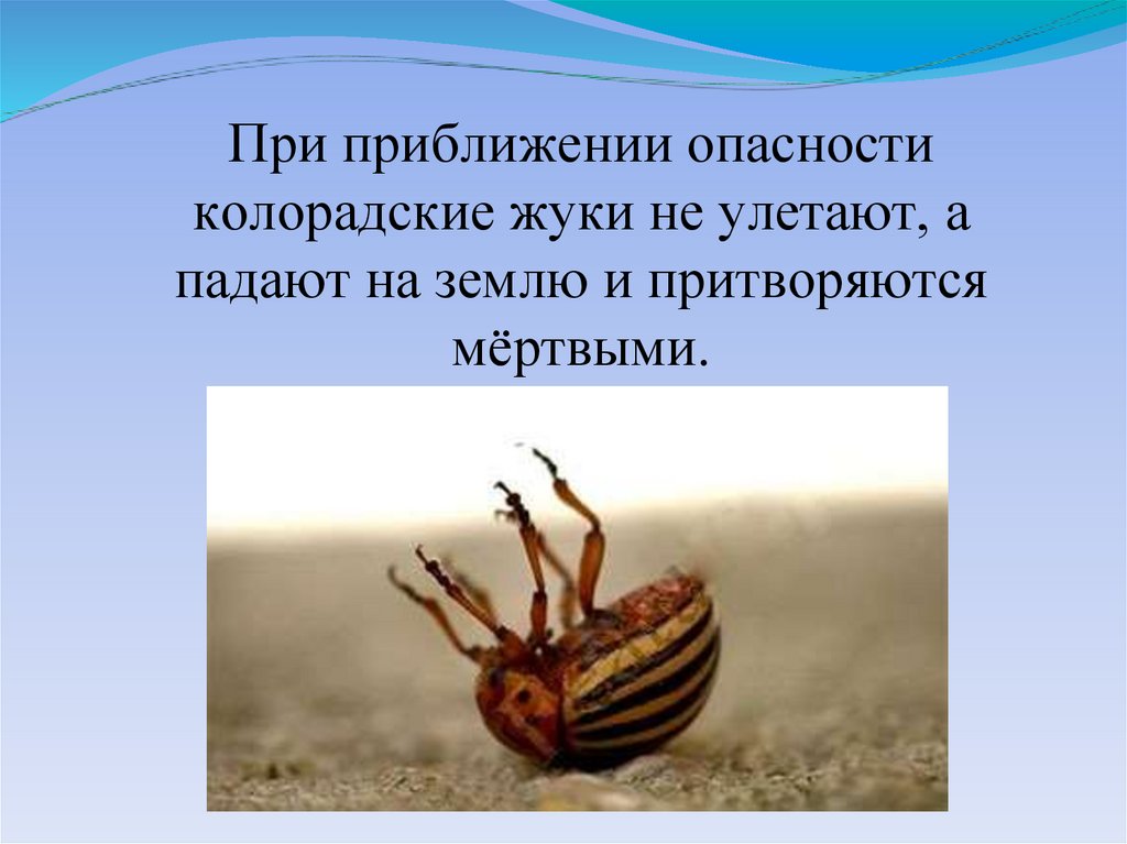 При приближении опасностиколорадские жуки не улетают, а