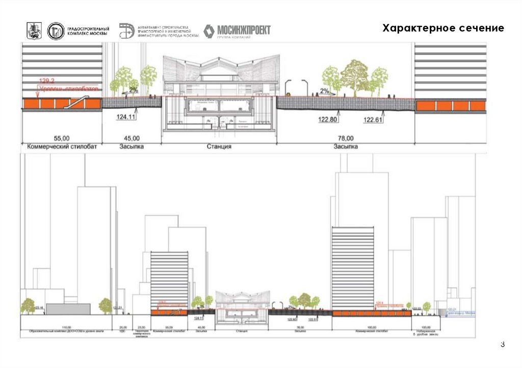 1) Строительство нижнего яруса проектируемого станционного комплекса