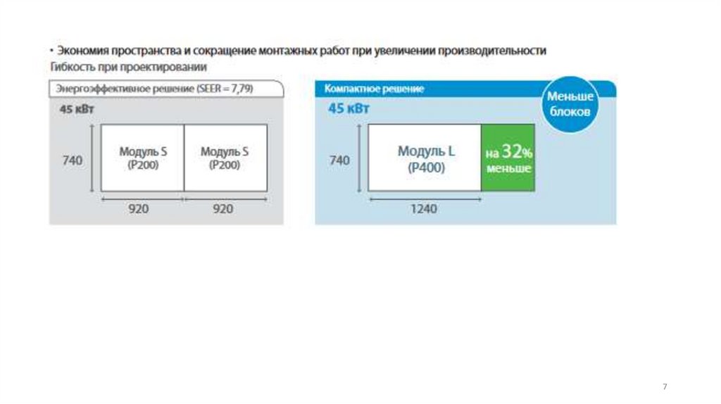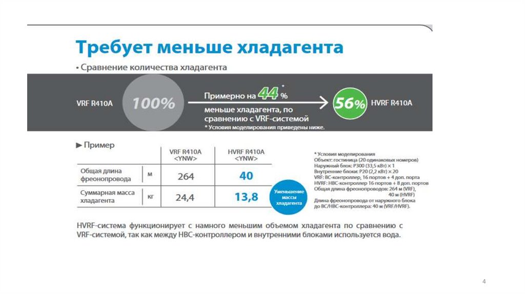 внутренними блоками позволяет уменьшить количество хладагента