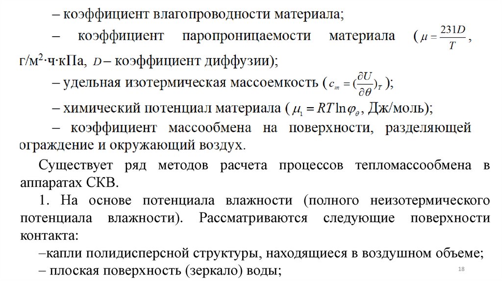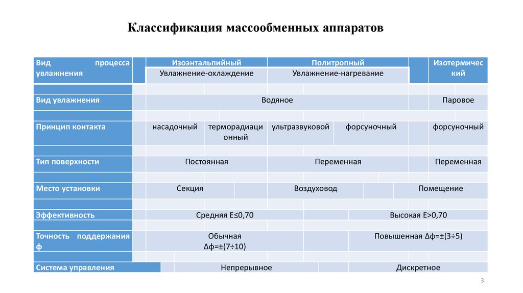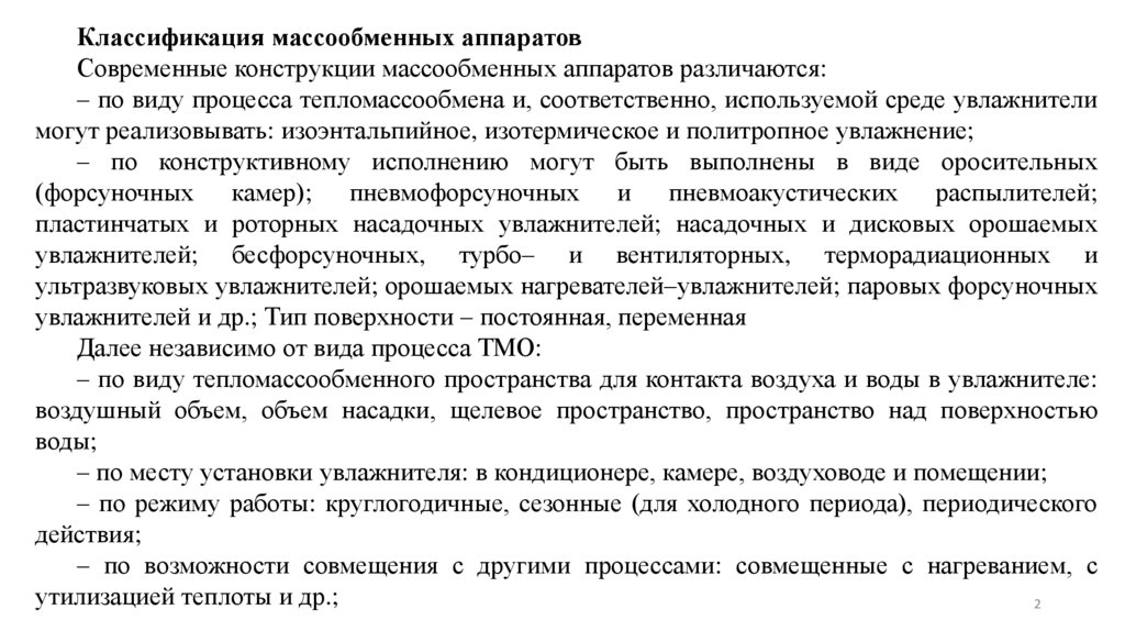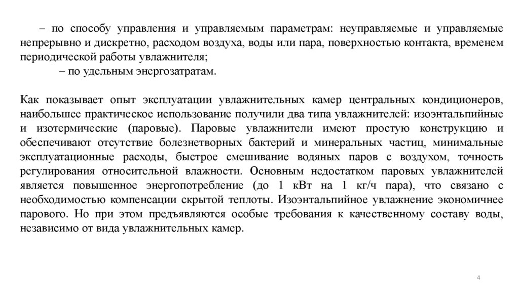 ультразвуковых увлажнителей; орошаемых нагревателей–увлажнителей; паровых форсуночных