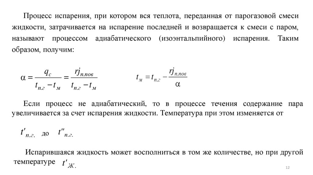 непосредственном контакте с водой или водным раствором. Изоэнтальпийный процесс может