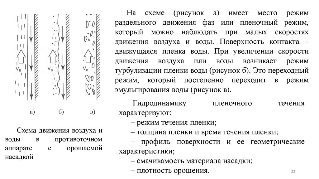 На схеме (рисунок а) имеет место режимраздельного движения фаз или пленочный режим,