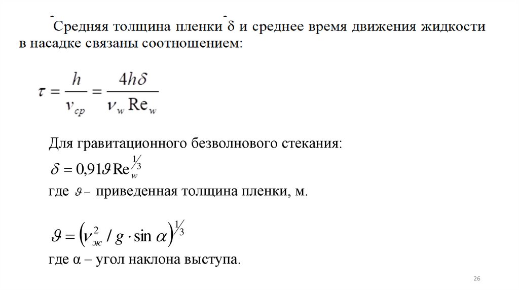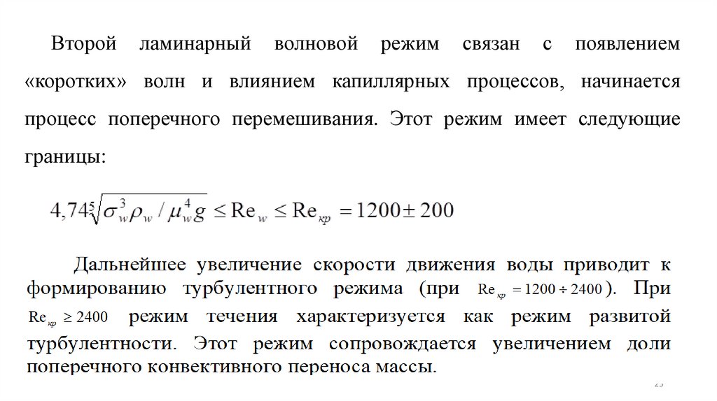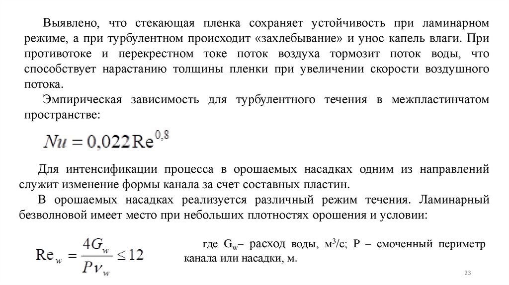 В орошаемых насадках реализуется различный режим течения. Ламинарный