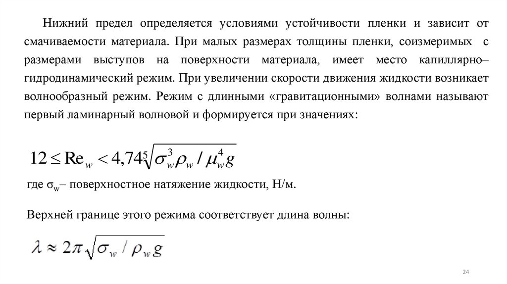 Нижний предел определяется условиями устойчивости пленки и зависит отсмачиваемости материала. При малых размерах толщины пленки, соизмеримых с