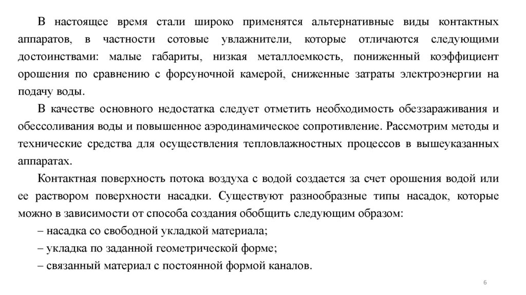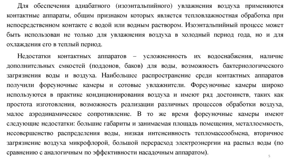 Для обеспечения адиабатного (изоэнтальпийного) увлажнения воздуха применяютсяконтактные аппараты, общим признаком которых является тепловлажностная обработка при