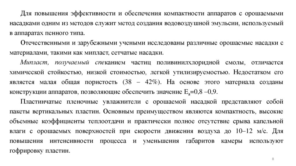 пластинчатых и роторных насадочных увлажнителей; насадочных и дисковых орошаемых