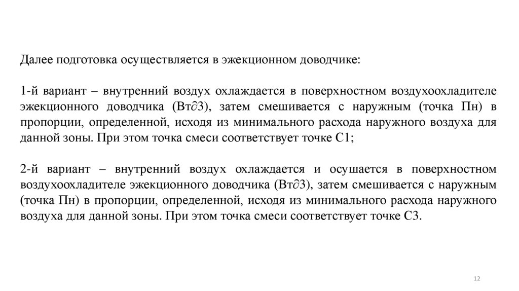 эжекционного доводчика (Вт∂3), затем смешивается с наружным (точка Пн) в
