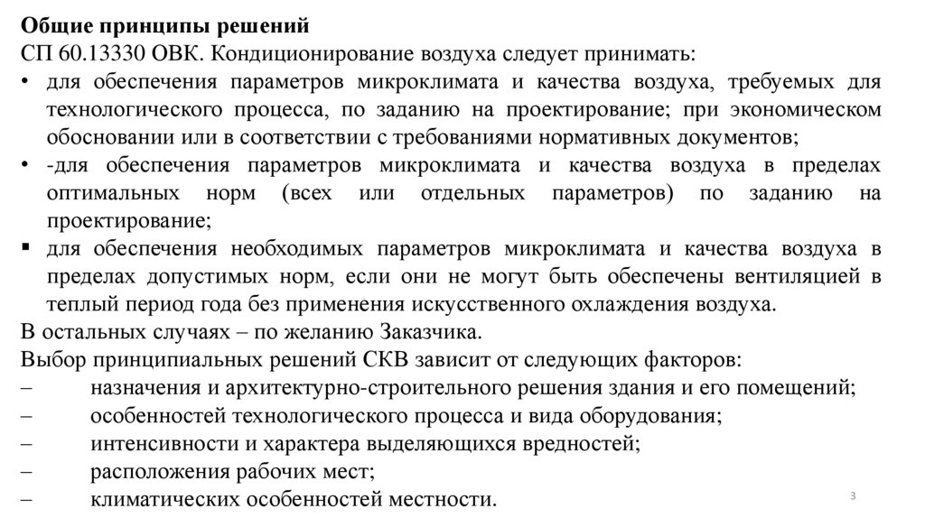 Общие принципы решенийСП 60.13330 ОВК. Кондиционирование воздуха следует принимать: