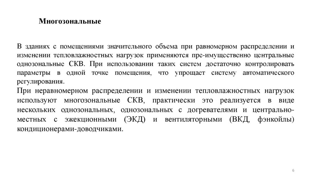 нескольких однозональных, однозональных с догревателями и центральноместных с эжекционными (ЭКД) и вентиляторными (ВКД, фэнкойлы)