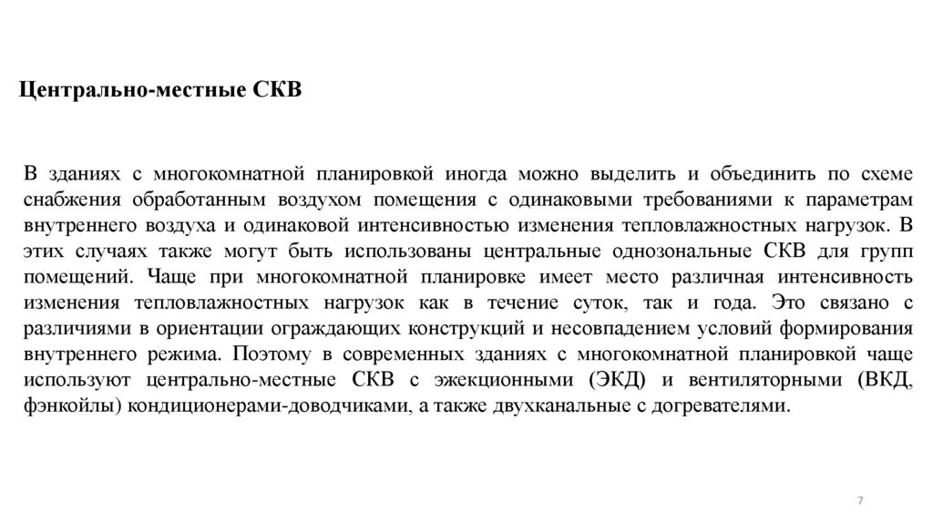 используют центрально-местные СКВ с эжекционными (ЭКД) и вентиляторными (ВКД,