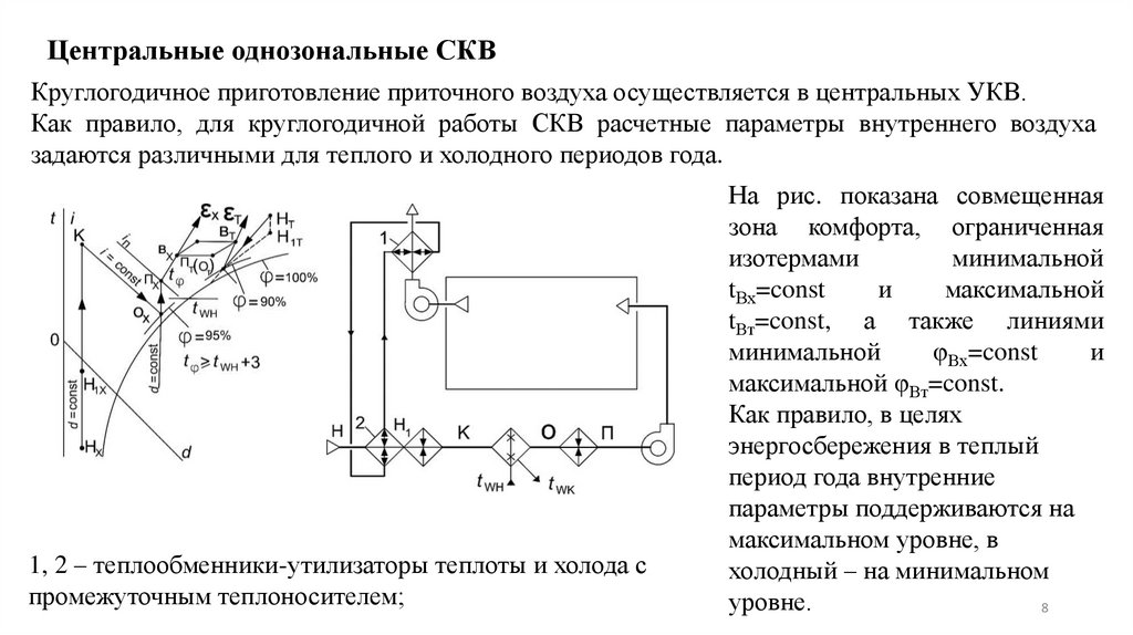 Центральные однозональные СКВКруглогодичное приготовление приточного воздуха осуществляется в центральных УКВ.
