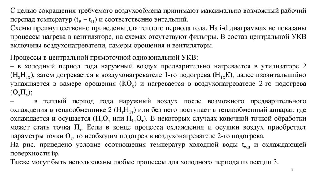 Схемы преимущественно приведены для теплого периода года. На i-d диаграммах не показаны