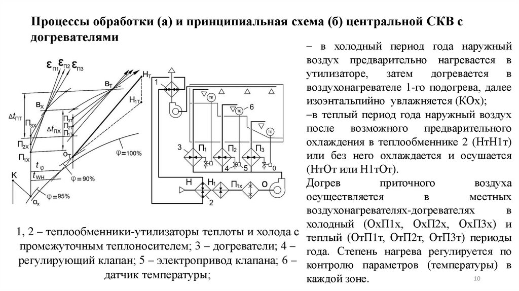 Процессы обработки (а) и принципиальнаядвухканальной СКВ с догревателями