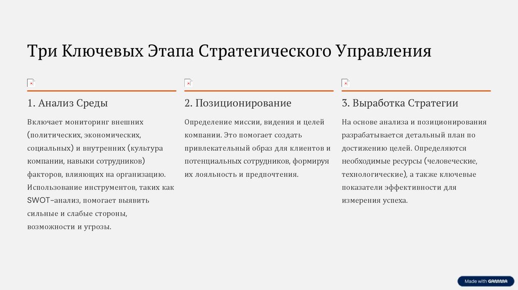Три Ключевых Этапа Стратегического Управления1. Анализ Среды