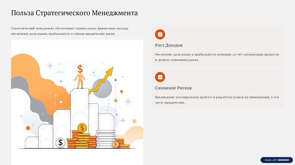 Польза Стратегического МенеджментаСтратегический менеджмент обеспечивает значительные финансовые выгоды,