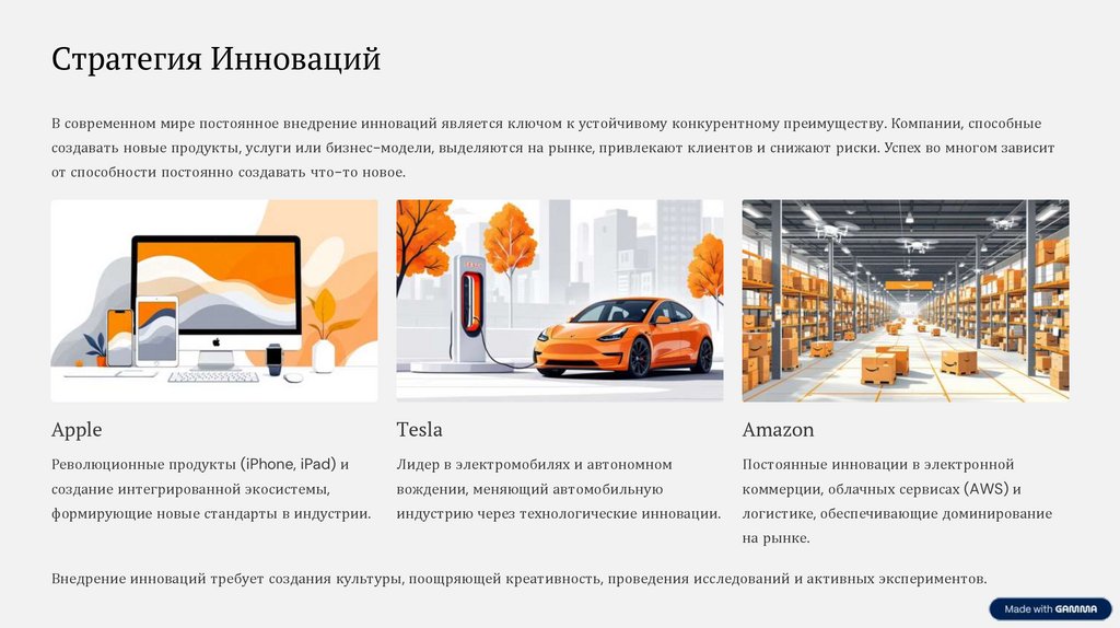 Стратегия ИнновацийВ современном мире постоянное внедрение инноваций является ключом к устойчивому конкурентному преимуществу. Компании, способные