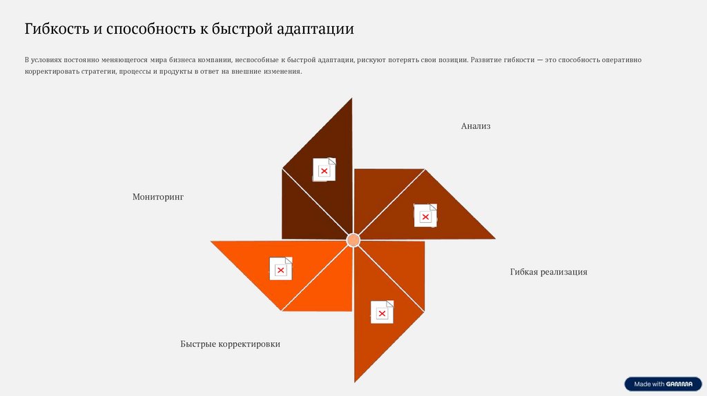 Гибкость и способность к быстрой адаптацииВ условиях постоянно меняющегося мира бизнеса компании, неспособные к быстрой адаптации, рискуют потерять свои позиции. Развитие гибкости — это способность оперативно