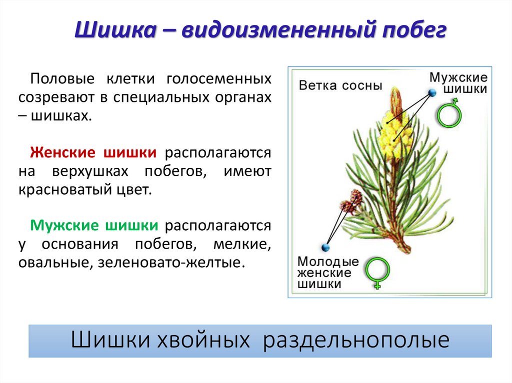 Шишка – видоизмененный побегПоловые клетки голосеменных