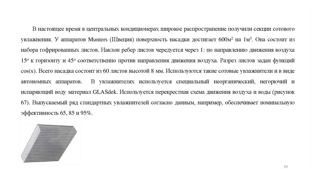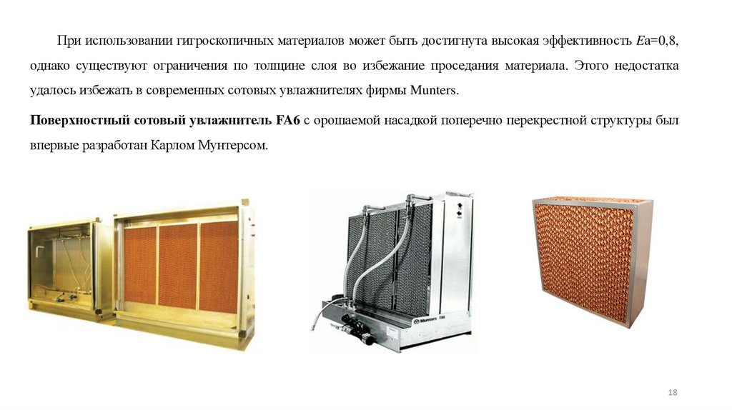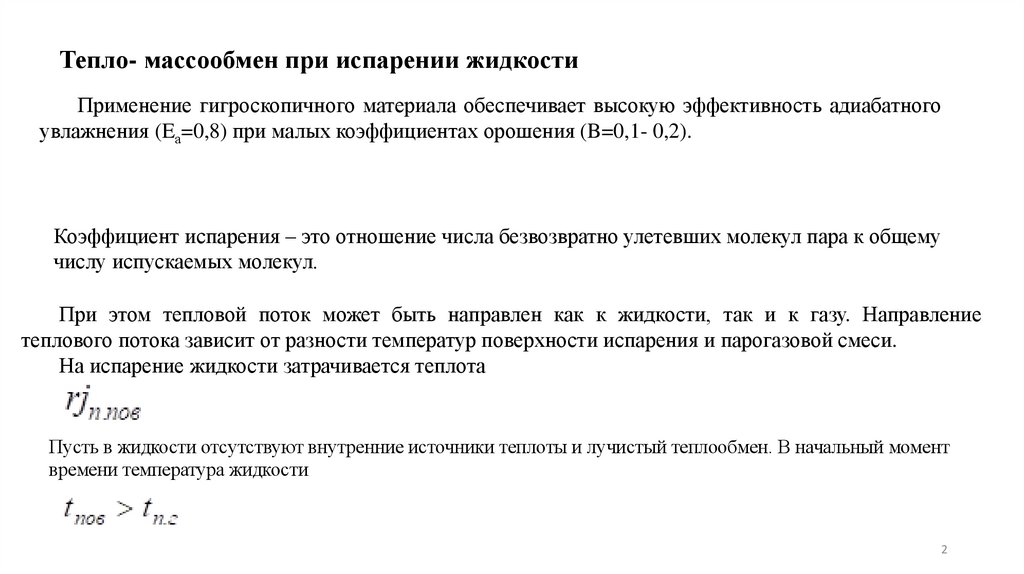 Тепло- массообмен при испарении жидкостиПрименение гигроскопичного материала обеспечивает высокую эффективность адиабатного