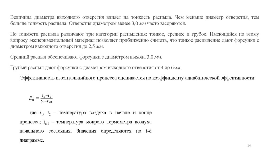 политропического процесса охлаждения и осушки необходимо в факеле распыла иметь капли крупного размера. В