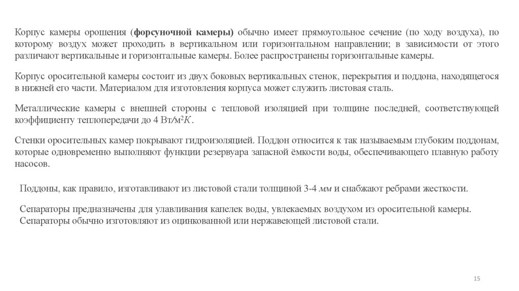 ограничивают скорость движения воздуха до 3 м/с и на выходе устанавливают каплеуловитель, представляющий