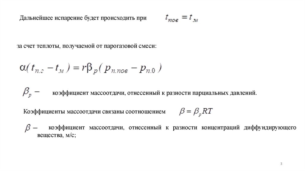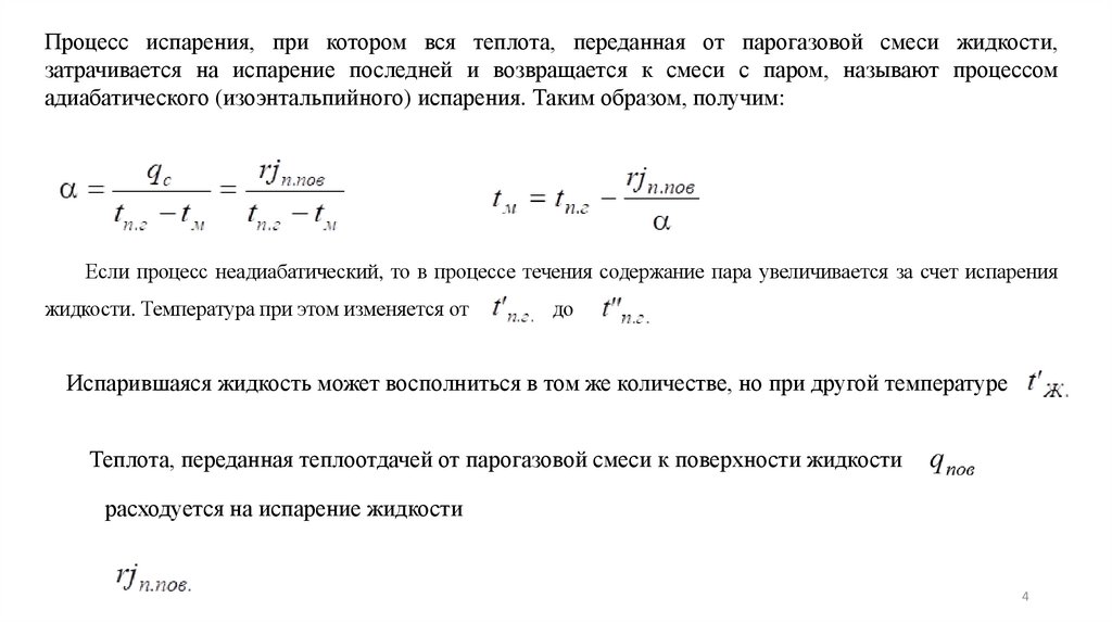 Дальнейшее испарение будет происходить приза счет теплоты, получаемой от парогазовой смеси: