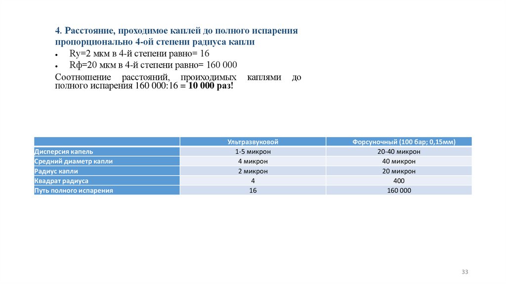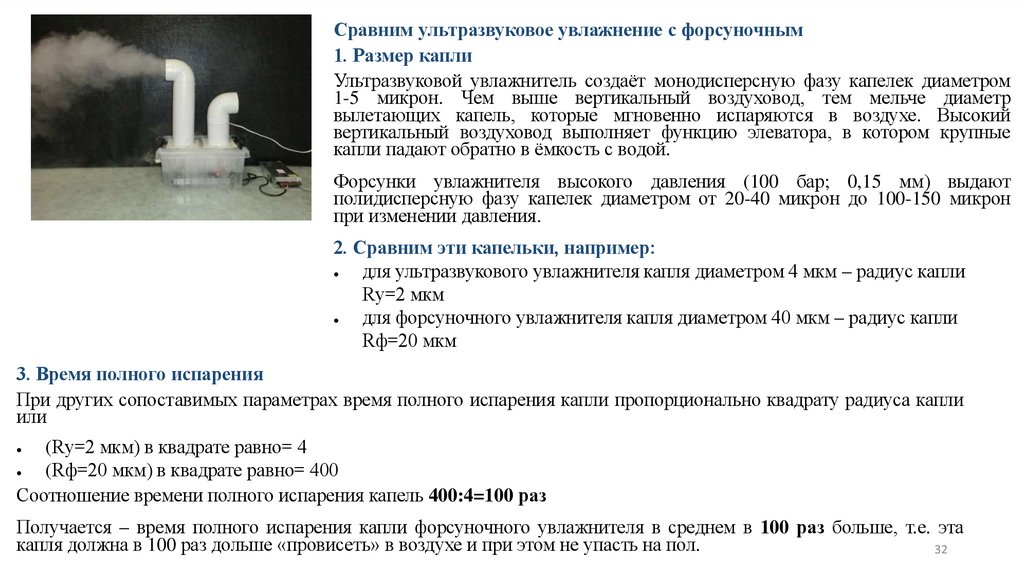 диаметре капелек 0,1 мм общая поверхность 1 л воды составляет 60 м2. Кроме того, разность парциальных давлений